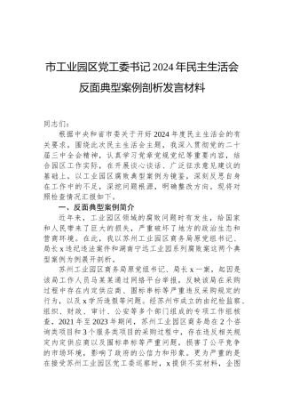 市工业园区党工委书记2024年民主生活会反面典型案例剖析发言材料(02-19).docx