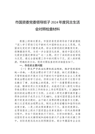 市国资委党委领导班子2024年度民主生活会对照检查材料(02-19).docx